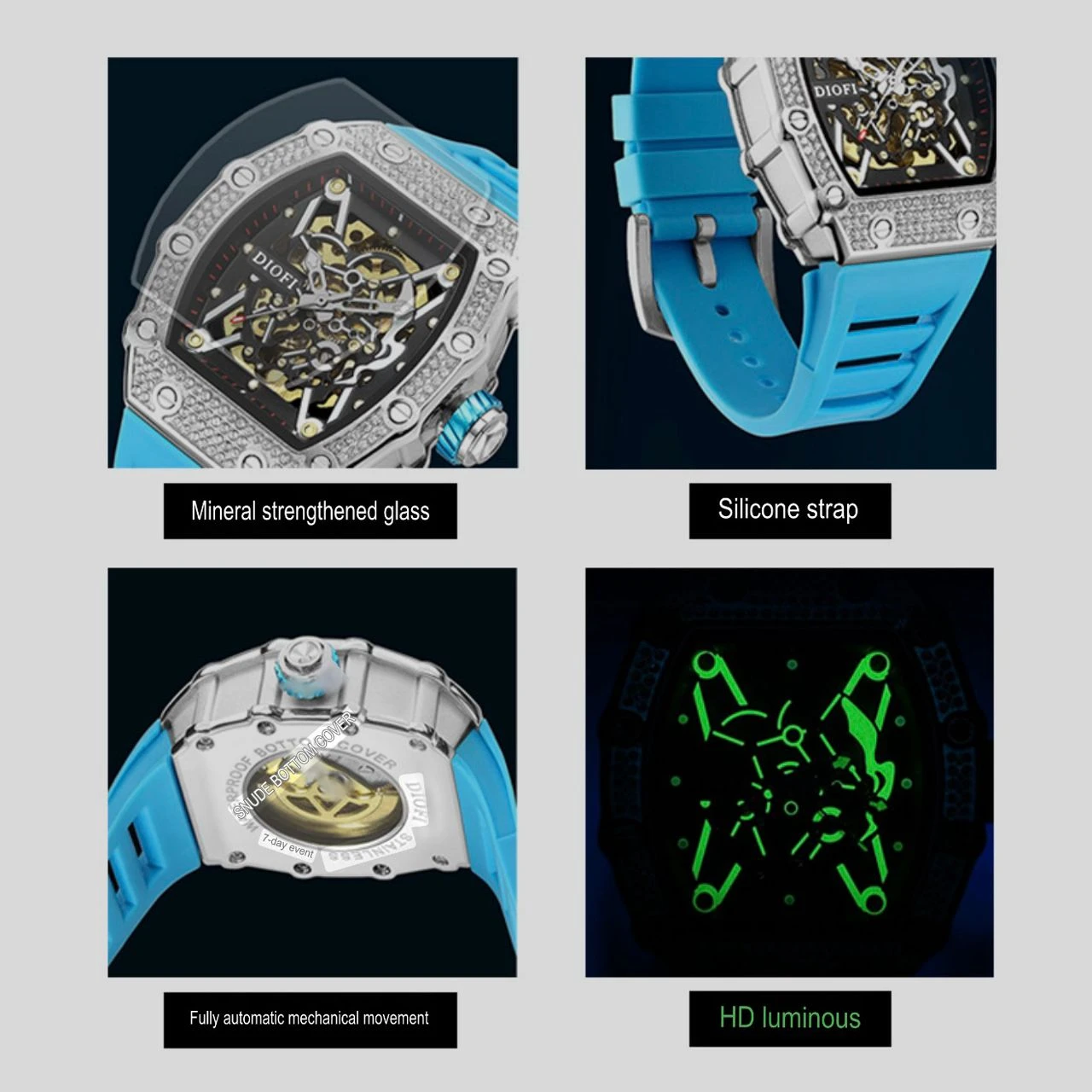 Official Authentic Richard Watch Men's Fully Automatic Mechanical Watch Tape Diamond Hollow Waterproof Luminous Famous Brand Men's Watch